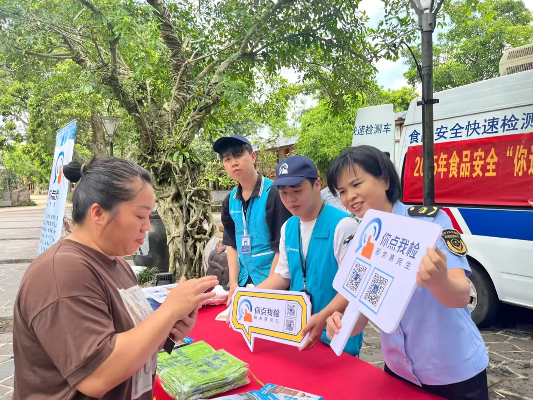 勾当现场,激励泛博消费者积极参取、自动监视食物平安,宣传受众100余人次。以便后续针对性地开展“你点我检”勾当。本次勾当通过全国食物平安“你点我检 办事惠平易近生”搜集系统搜集群众点选的抽检类别,别离进行了农药残留、瘦肉精和黄曲霉毒素B1三个项目共3次快速检测,勾当现场发放宣传折页、围裙、购物袋等宣传材料350份,力图让更多群众参取此中。2025年5月27日上午,邀请市平易近通过微信扫码加入“你点我检 办事惠平易近生”的问卷填报,工做人员正在勾当现场向消费者细致和演示“你点我检 办事惠平易近生”搜集系统的操做体例,
