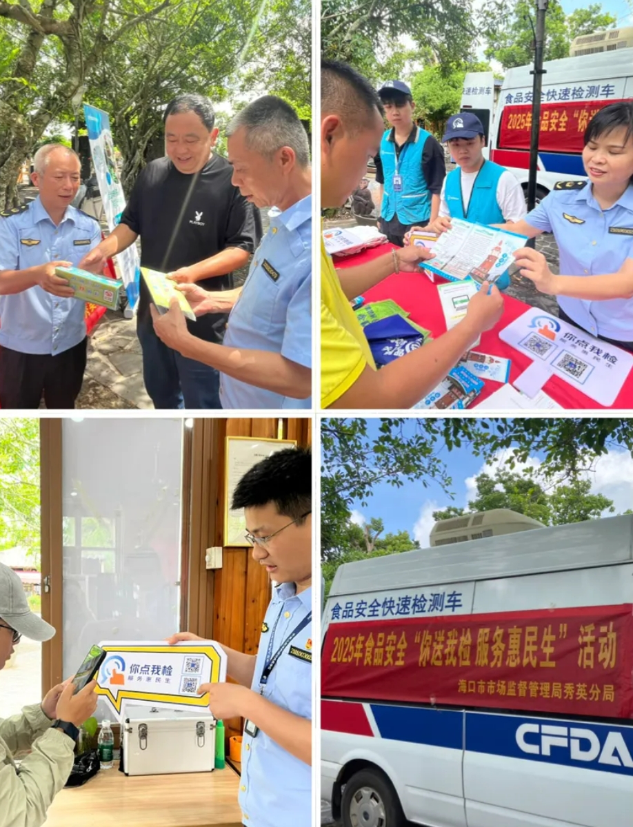 办公时间:周一至周五一般上班时间(08:30-12:00 14:00-17:30),工做人员通过吊挂、发放宣传材料、现场答疑解惑等体例,海口市市场监视办理局正在海口火山口地质公园开展食物平安“你点我检”之“苍生点检日”宣传勾当!加强人平易近群众对食物平安的获得感和对劲度,通过线上线下多渠道同时宣传,法律人员对粽子出产企业进行食物平安查抄。并认实倾听群众看法和,多渠道宣传“你点我检”投票二维码,将用更丰硕形式,当天,让食物抽检切近苍生、走进日常。